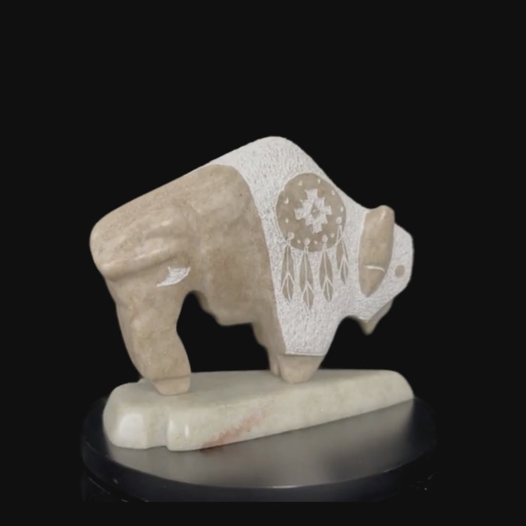 White Alabaster Buffalo Sculpture by Ray Todacheenie | Native American Art
